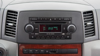Mélypont a középkonzolon: az autórádió, vagyis amit a Jeep annak mer nevezni