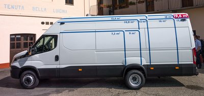 A Daily magassága eddig is megvolt, oda csak azért húztak vonalat, hogy a meglévő alacsonyabb változatok tetővonalát jelezzék. Az orrára írt 70-170 a megengedett össztömeget és a motorteljesítményt jelenti. A 70 az természetesen mázsa, tehát összesen lehe