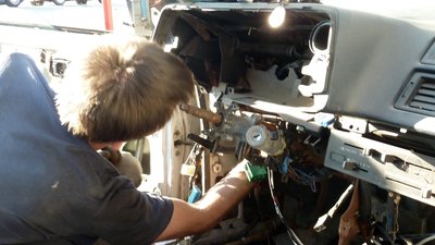 Kormányoszlop ugyan van, itt nincs a helyén, műszeregységet vagy kukázunk, vagy bekötünk pár alapvető órát