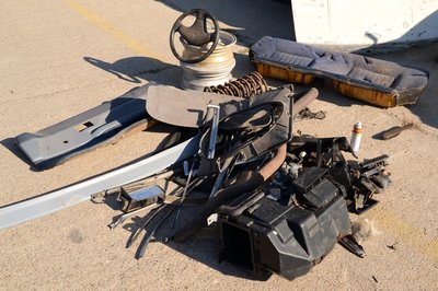 A szemétkupacban szinte minden apró elemet megtaláltunk, kapcsolókat, csetreszeket, indítókulcs nincs, de nem is kell