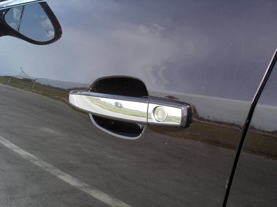 A sötétbarna fényezésen üt a kilincs műkróm rátétje.