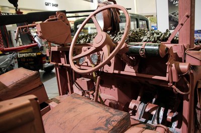 Ebből a teljesen lecsupaszított LAnd Rover Series II, a sivatagi álcázás miatt lett ilyen szép rózsaszín