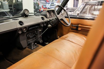 Ez az 58-ban épült Series II. 13 000 mérföldet tett meg. A Series III-ra emlékeztető grill ne tévesszen meg senki, csak elegánsabbra szerették volna. A kék fények hagyományosan a Royal Flotta autóinak részei