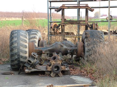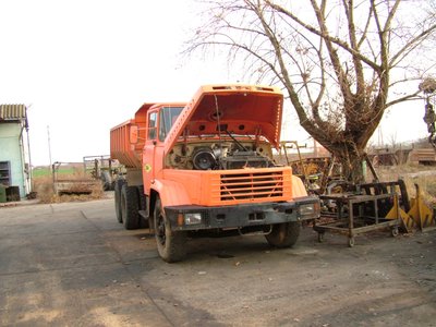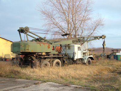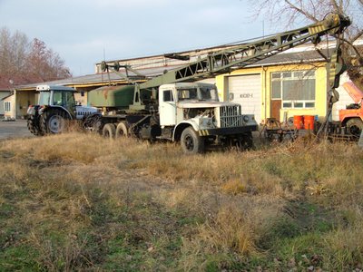 A telep a KRAZ felújítóbázisa volt, a fafülkés, darus Krazzal emelgetik a felújításra behozott gépeket.