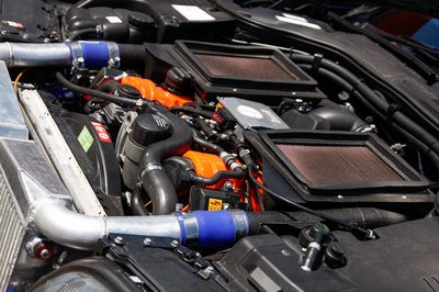 Két légszűrő, két turbó. Annyira patika a megvalósítás, hogy nemhogy olajpára nincs itt, de igazából a gépszag is hiányzik