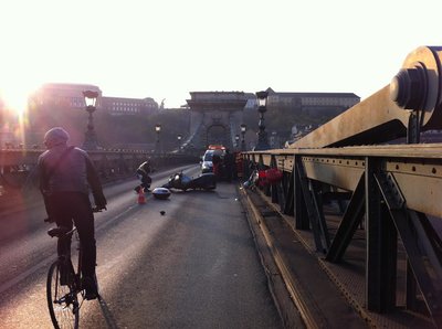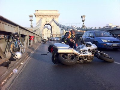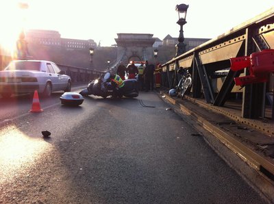 Motoros és kerékpáros ütközése a Lánchídon | Totalcar