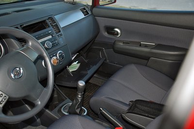Tapizva is egész tűrhető a Tiida belseje; a Lineánál finomabb, a Civicnél durvább