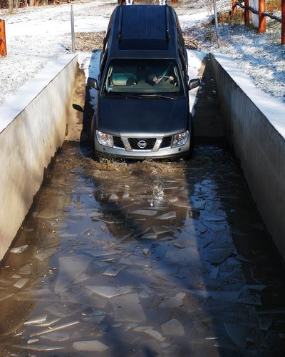 Vizesárok: csak az igaz terepjárók próbája, alacsony hasmagassággal már a lehajtónál felül az autó