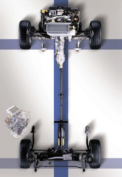 Állandó összkerékhajtás központi difivel a Subaru raliautóiban is ez van, csak ott aktív vezérléssel, és lehet állítani a tengelyek közti nyomatékelosztást