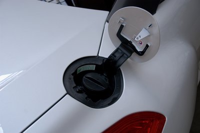 Atipikus - és bevallottan nem túl praktikus - helyen a tankbetöltő, érdemes megvárni, amíg lecsöpög a pisztolycsőről a benzin