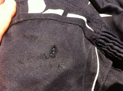 Sajnos a kabát anyaga itt átlyukadt, de a protektor tette a dolgát