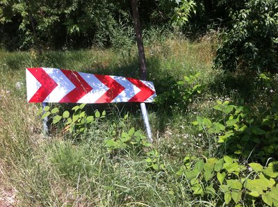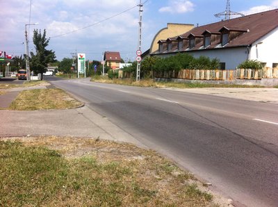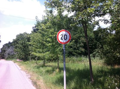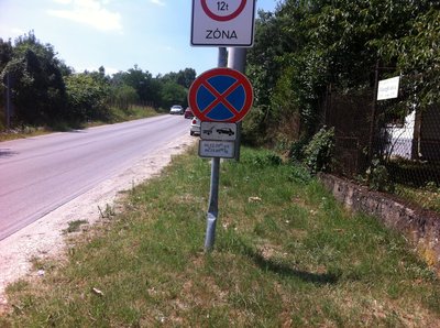 Ezt a táblát pár hetente elfekteti valaki. Azóta megint felállították, nem véletlenül van a nehezen belátható útkanyarulatban