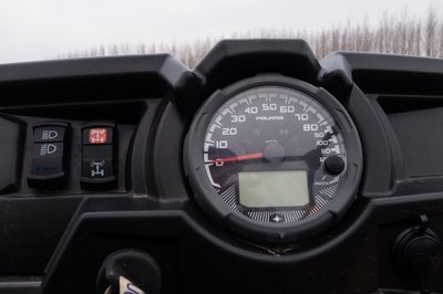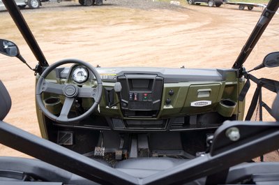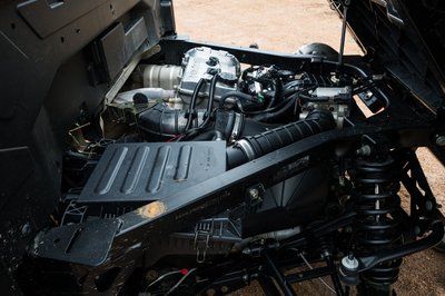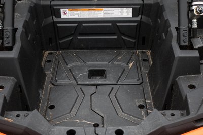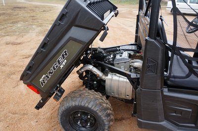 A 900-as munkagép platója alatt a Polaris kisebb motorját találjuk, csaknem hetven lóerővel. Elég csücskös ez is, de teljesen más a felhasználási területe.
