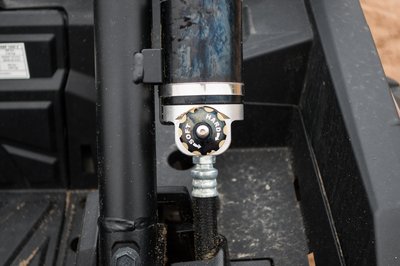 Kézzel és/vagy elektromosan is billenthetjük a kis platót. A B-oszlop deklije mutatja, honnan szívja a levegőt, ide snorkelt rögzíthetünk, anélkül ilyen magas vízben lehet gázolni.