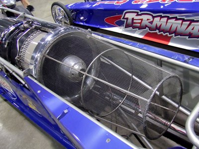 A sugárhajtású dragster hajtóműve elé tett nem csak falevelek, bogarak és kavicsok, de kisebb termetű nézők beszívását is hivatott megakadályozni