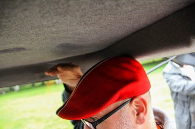 A kesztyűtartó fedelére ragasztott kárpitanyagot már nem mindenhol fogja a ragasztó