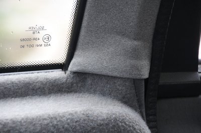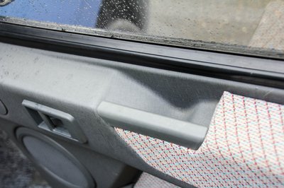 Az ajtópanelek kemény műanyagja textilmintás, de ahol az ember könyököl, ott puha plüssel van borítva