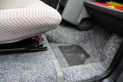 A padlólemez teljesen sík, csak a legelső két ülés előtt van egy-egy mélyedés a lábaknak