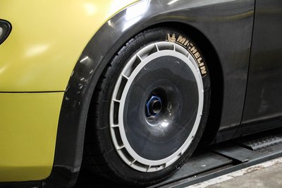 Az első kerekek hűtésére használt levegő itt lép ki. Az ajtó nagyjából háromszor olyan vastag, mint az eredeti