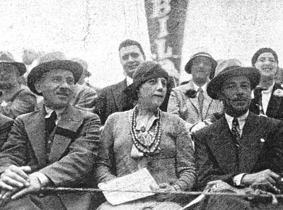Sváb-hegy, 1930. szeptember 21. Vittorio Jano, Türr Stefánia és Gianferrari, az Alfa Romeo gyár igazgatója a versenyt figyelik. Jano fekete szalaggal a zakóján (Fotó: Collection Burányi)