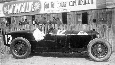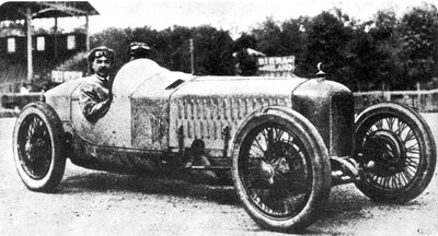 A P2-es Alfa Romeo versenyautó, Vittorio Jano talán leghíresebb alkotása. A kormánynál gróf Gastone Brilli-Peri, aki sípot fújva zavarta el maga elől a lassúbb versenyzőket. A kép az 1925. évi GP előtt készült a Montlhéry pályán