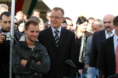 Dr. Suchman Tamás szokatlan látvány a MotoGp logók előtt