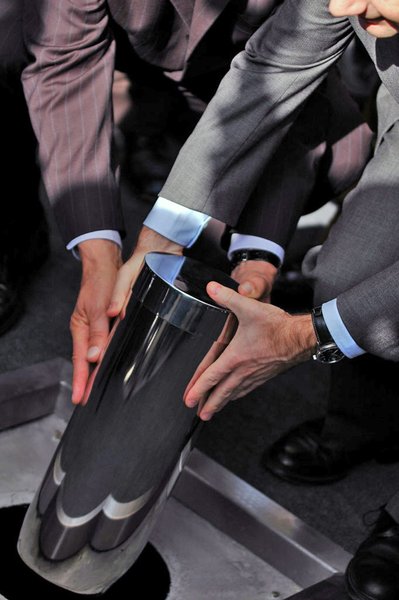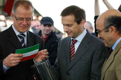 Bajnai Gordon, Gyenesei István és Carmelo Ezpeleta magyar zászlót raknak az urnába