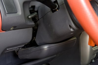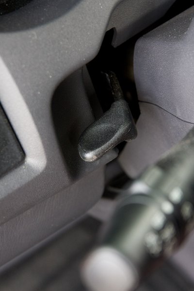Nem sikerült rájönni, mi ez a kormányoszlop alatt. Talán a térdlégzsák őse?