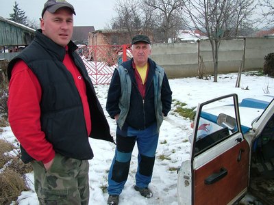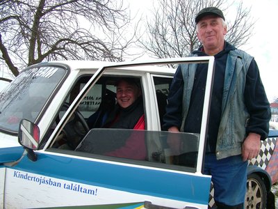 Elöl Józsi, a versenyző, hátul apu, a főkonstruktőr