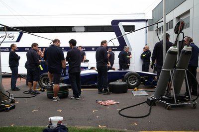 A kis öblökben épülnek a versenyautók, a placcon valamit éppen próbálnak