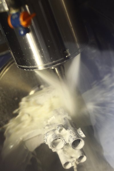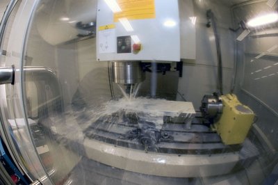 Így készül egy Formula 1-es alkatrész. Bőséges hűtő-kenő folyadék alatt