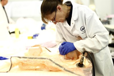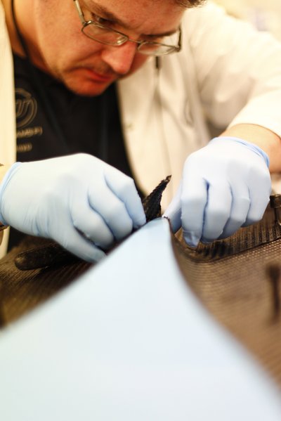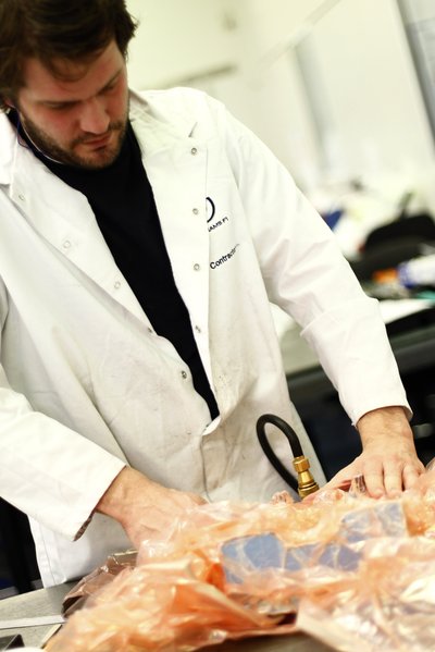 Levákuumozott zacskókban megy a szénszálas alkatrész a kemecébe