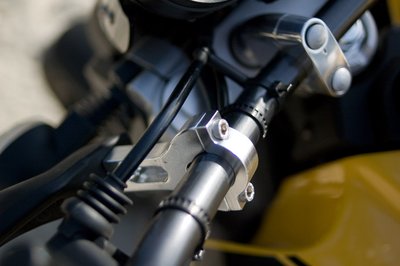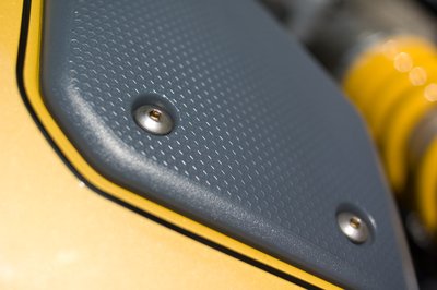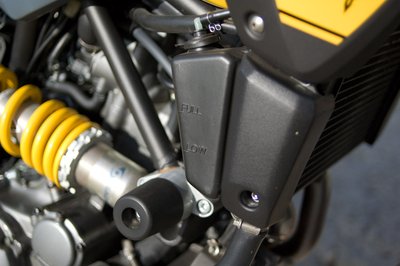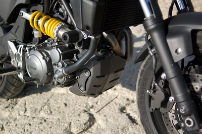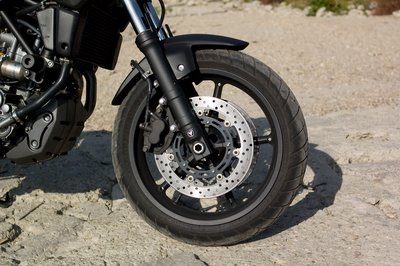 A Fazertől kapta az első futóművet. A dupla, 298-as tárcsák és négydugattyús fékek kellő lassulást biztosítanak