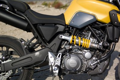 Egyoldali rugóstag: a Kawasaki ER-6-on láttunk hasonlót, de itt vagányabb szögben áll