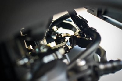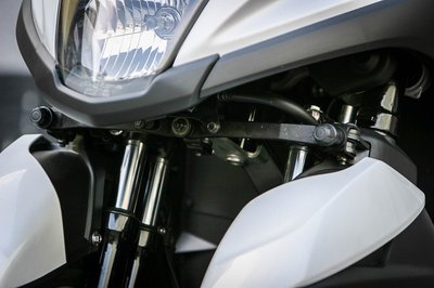 Innen csak egykarú első futóművesnek néz ki, mint egy Vespa