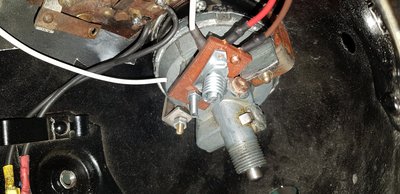 Ott lent, a kis réz cuccnál fúrtam véletlenül szét a támasztékot. Itt fent pedig a híd, amelyik felül pozicionálja a tengelyt és a két csavar meglazításával mindenfelé elmozdítható, még billenthető is