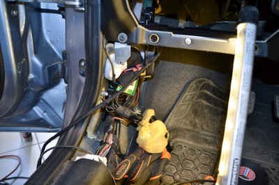 A bandázzsal betekert dobozt kötik az OBD csatlakozóra