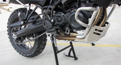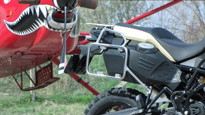 A nyereg alatti tank méretét nyolc literrel megnövelték. A masszív cső keretre túradobozokat, táskákat lehet szerelni, vagy akár bozótvágót, kannákat és fejszéket is, és egyben bukócsőként is funkcionál. A motor mozgatásakor kimondottan jól jött a sok ka