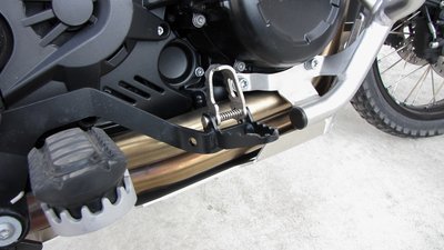 Meglepően könnyű középsztenderre (ami feláras tartozék) húzni a magas, 229 kilós motort
