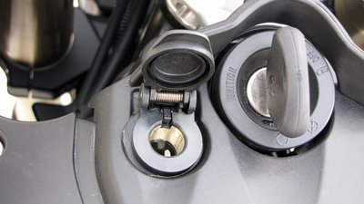 Fedél alatt lakik az elektromos csatlakozó - sajnos nem szivargyújtó méret, igaz, ez nagyobb áramokat is elbír