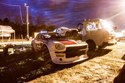 Ez bizony már este kilenc óra után készült. Lóránt, az autószállító hátán a kormányozhatatlan Shitgun