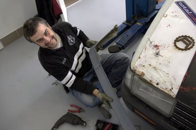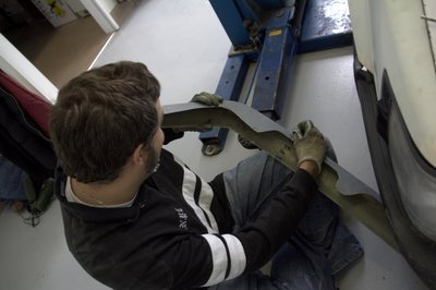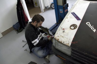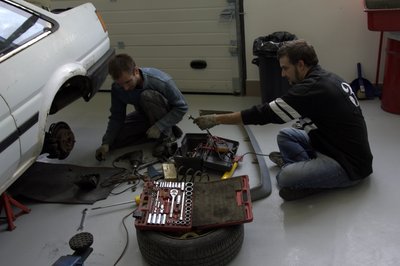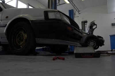 Kerestük, hogy hová koppan a hátsó futómű. Hát itt csinált magának helyett a lengőkar. A kemény gátlók és rugók segítettek a dolgon, már nem pattogott az autó hátulja