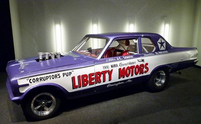 A furcsa arányok magyarázata, hogy ezen a gyorsulási versenyzésre épített 1966-os Dodge Darton mind az első, mind a hátsó tengelyt előrébb hozták a jobb súlyelosztás és egyenesfutás érdekében. Az autónak természetesen nem sok köze van a közönséges, utcai