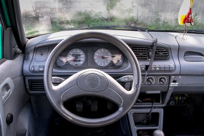 Minden műanyag kopogós és komor, így csak a kormánykerék puha gumija és a váltógomb fosszilizálódott. A többi nagyjából egyben van