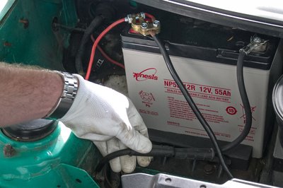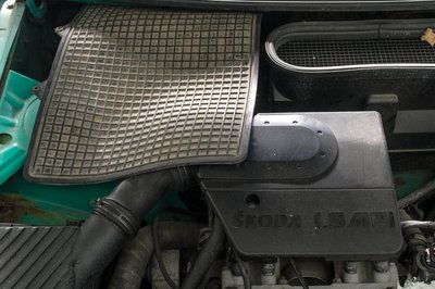 A gumiszőnyeg alatt az akkumulátor lakik. Ötvenöt amperórás, nagyon forgat, de nem ebbe az autóba való