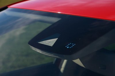 Itt már majdnem vízszintes a szélvédő, ide tették az érzékelőket, a kamerát, így pedig ez a doboz nem takar bele a látómezőbe
