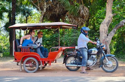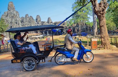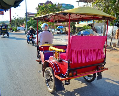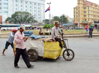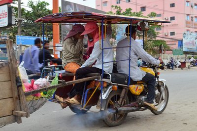 Kambodzsai áruszállító tuktuk alkalmi ülőhellyel