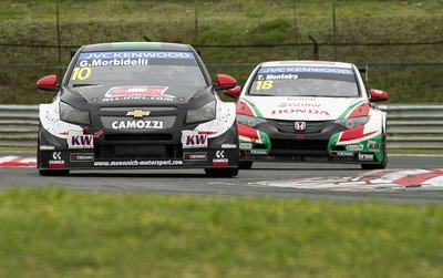 A fordított rajt két nyertese, Tiago Monteiro és Gianni Morbidelli lógtak meg a második futamon. A kilencvenes években több Forma-1-es magyar nagydíjat megjárt Morbidellinek nem volt könnyű dolga Monteiróval. A Münnich Motorsport Chevroletje még nem állt