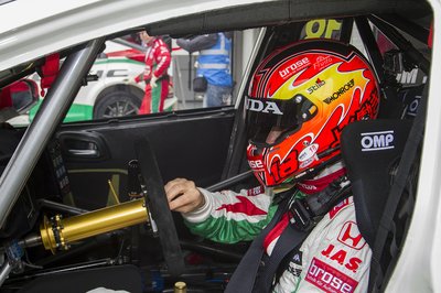 Tiago Monteiro az első futam rajta előtt. A hétvége legjobb hondása mindkét futamon dobogóra állt. Az első futamon még csak távolról nézte a Citroeneket, a másodikon már a győzelemért meccselt Morbidellivel.