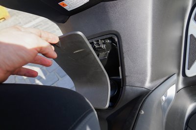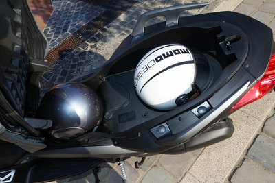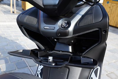 Nagy rekesz. Yamaha-szokás szerint az ülés a gyújtáskulcs elfordításával nyitható, elektronikusan